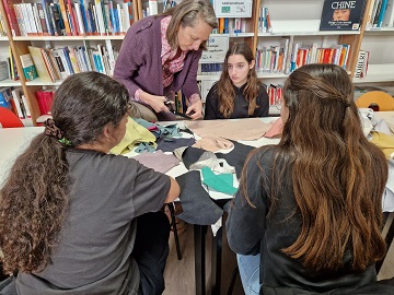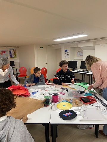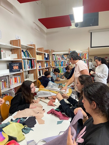 Vendredi 14 novembre, L’association jeux de matières qui participe au salon des Métiers d’art du 19M est venue expliquer son action auprès des sans abris à nos élèves de 3èmes prépa métiers. L’association récupère des chutes de différents tissus ou cuirs des grandes maisons de coutures puis confectionne des vêtements pour les sans abris ou des petits objets (pochettes, porte-cartes etc.) qui sont ensuite donnés aux sans abris ou vendus et dont la recette des ventes est transmise aux associations de sans abris. Les élèves de 304 ont confectionné à leur tour des pochettes, porte-cartes et des petites bourses (porte monnaies) pour les vendre à la fête de Noël de La Trinité.