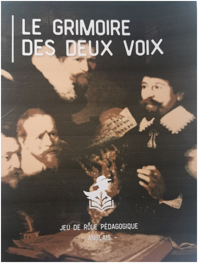 Deux intervenants, Simon ANDRY et Léopold, de l’atelierCETUS DVELH « Un Cours dont vous êtes le héros » ont animé un jeu de rôle pédagogique, Le Grimoire des 2 Voix. Ce scénario, créé sur mesure à partir d’une liste d’objectifs dont le principal était la reconnaissance des accents anglais et américain à travers la prononciation et l’écriture phonétique, a permis à tous les élèves de devenir joueurs, puis spectateurs d’une aventure contée pleine de rebondissements.
