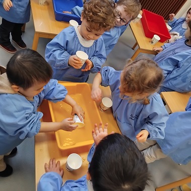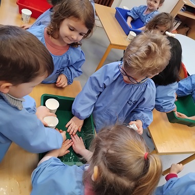 En février, la classe de Petite Section a travaillé sur les différents états de l’eau :