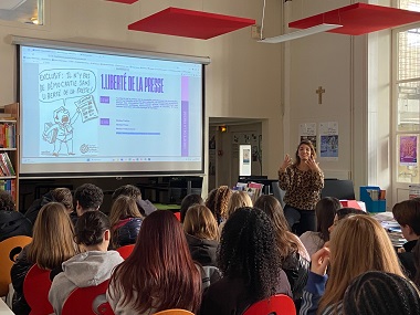 Mardi 31 mars, les 202 ont participé à un atelier à la Maison de l’Europe sur le thème de l’ingérence étrangère, à partir des podcast » Le debrief de Clara & Raphaël » ou « Comment débusquer les manipulations de l’information ».